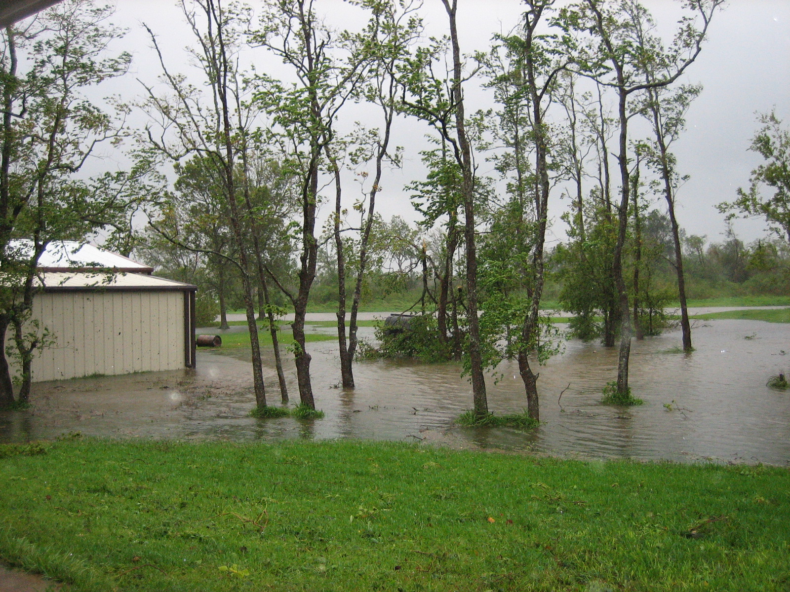 The backyard was a lake with a stream running to the river/bayou drainage behind us. It is hard to make out but the bayou that drains the area was running so fast the quantity of water was stunning.