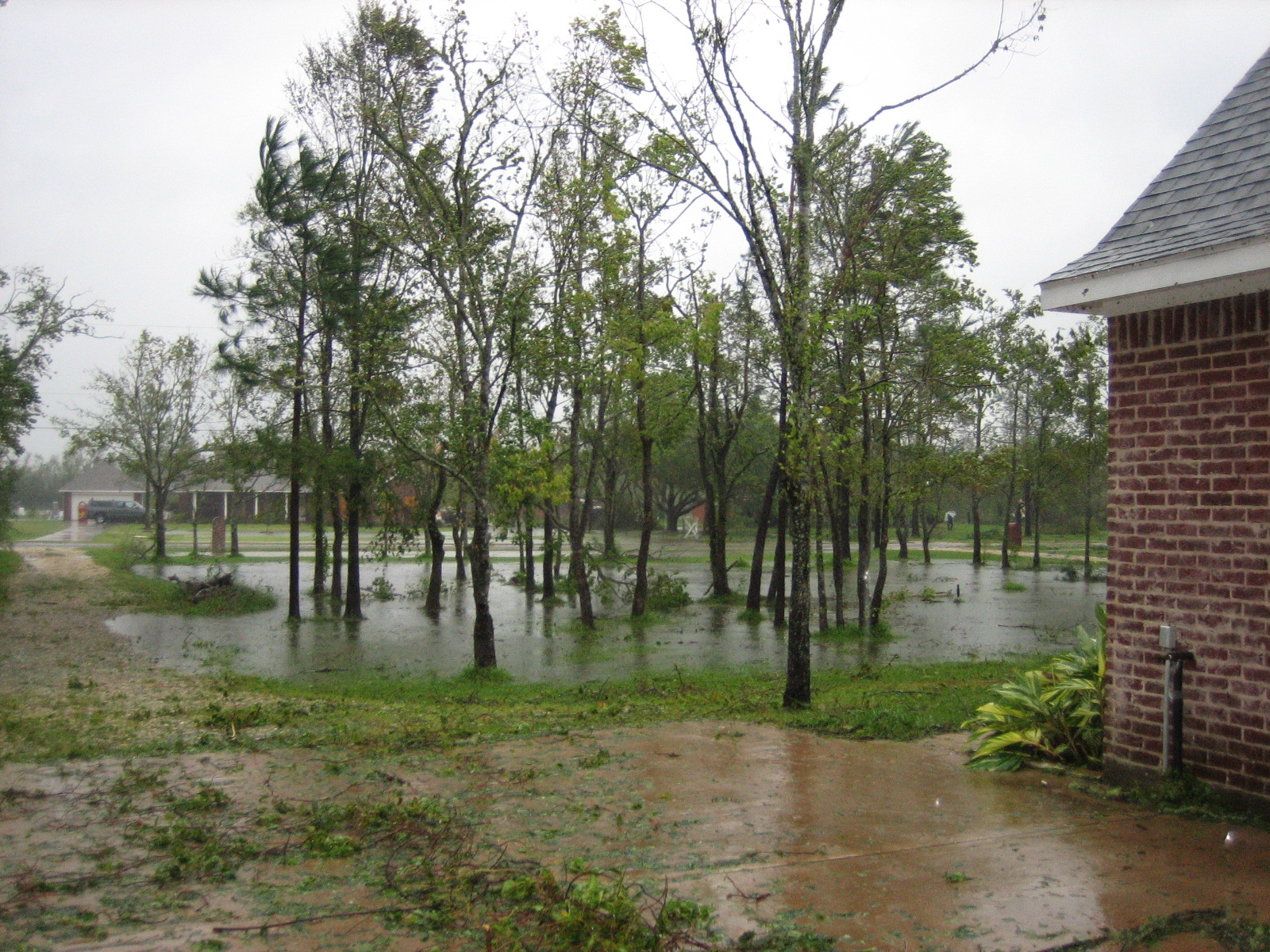 Our frontyard 6 hours after landfall, fortunately it drained quickly.