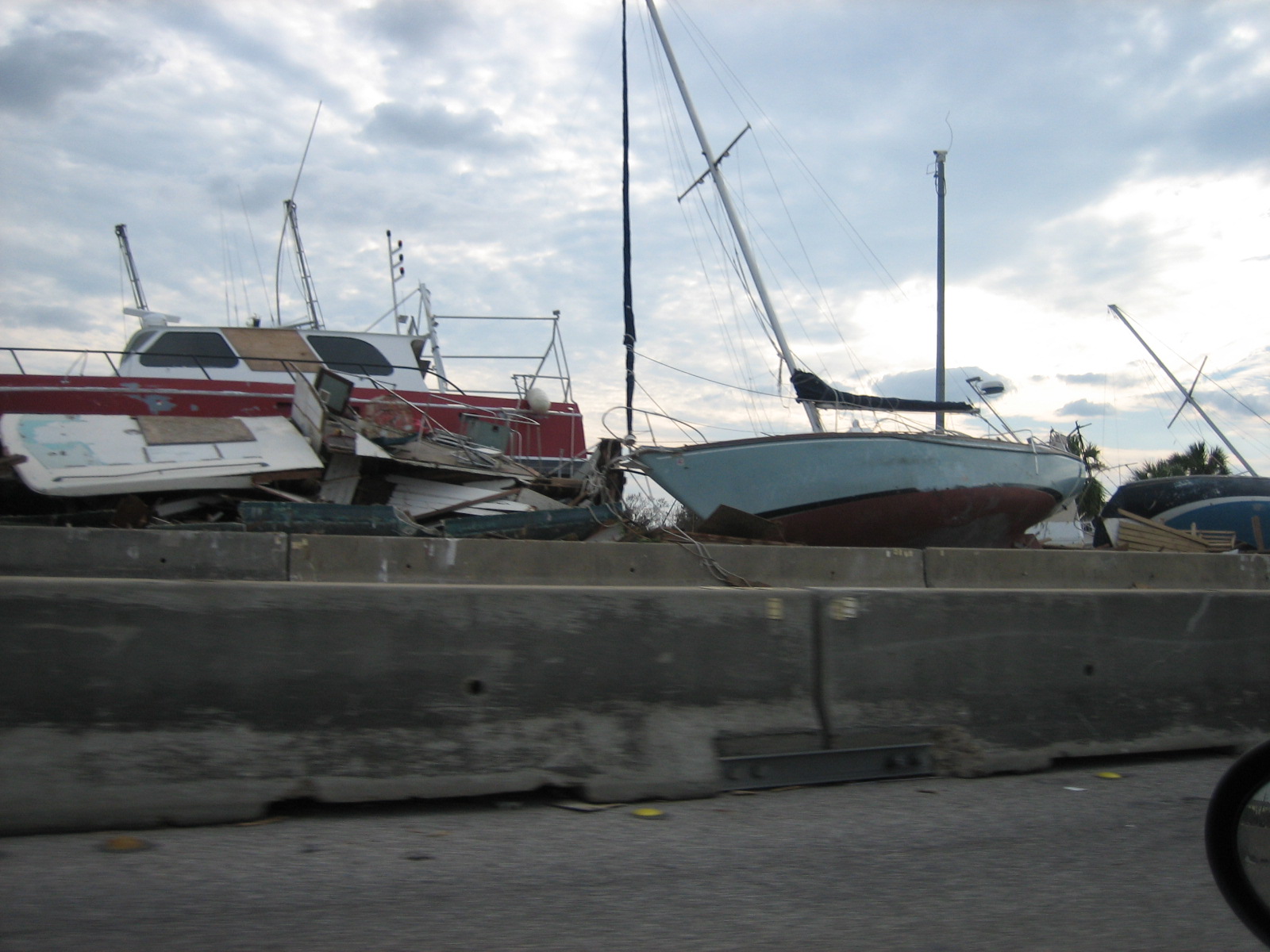 Not an unusual sight all over the area, boats are littered on land and even blocked the interstate.