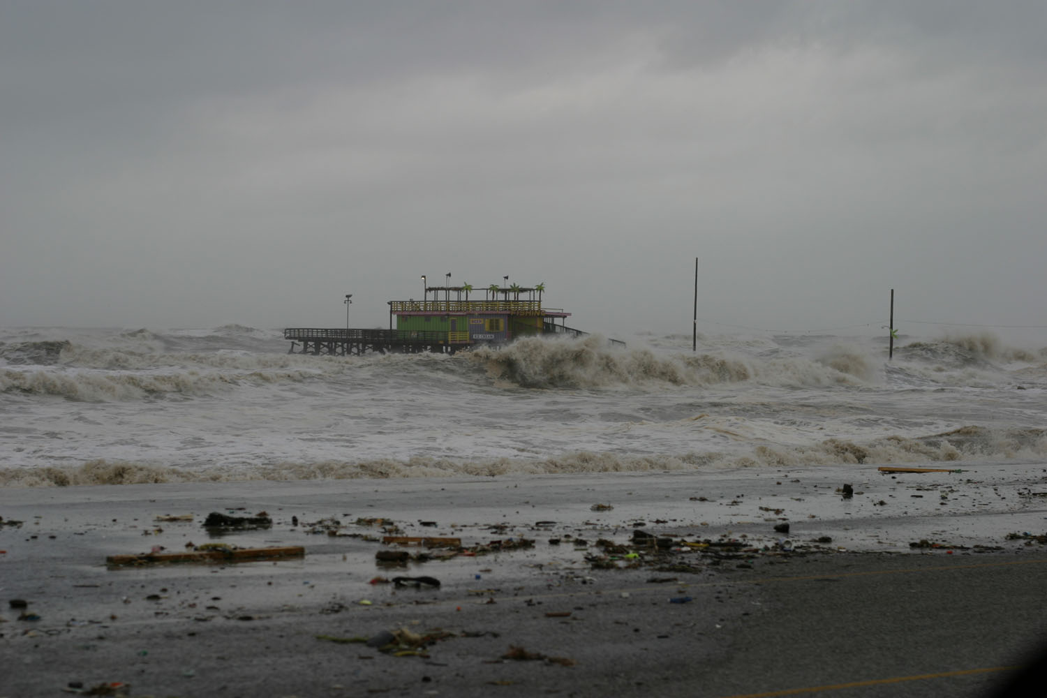 One of the first businesses on the seawall side of the island to be washed away, again this is more than 12 hours before landfall.