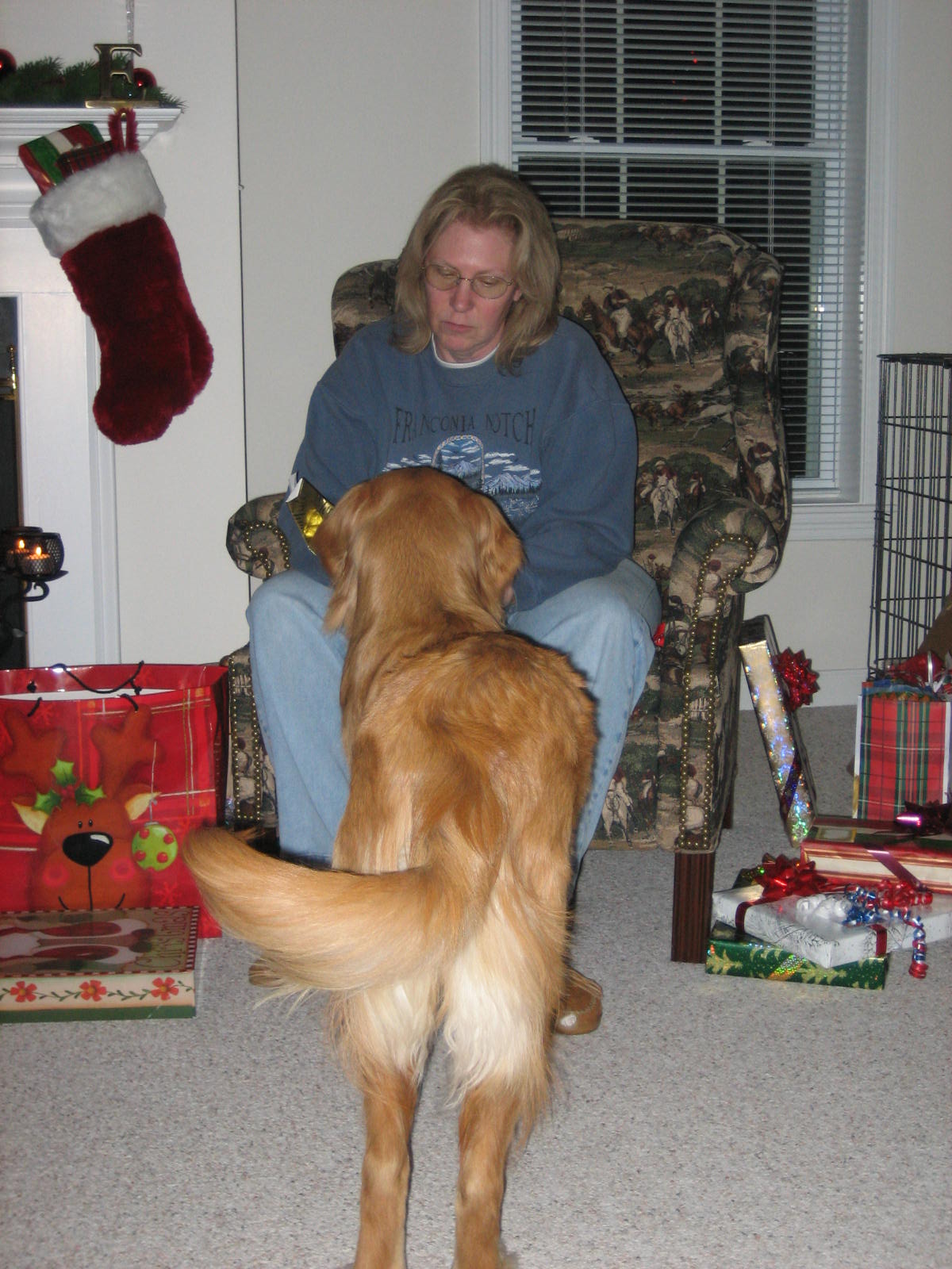 I cannot remember which present this was but Punkin seems to be getting the hang of this whole Christma present idea.